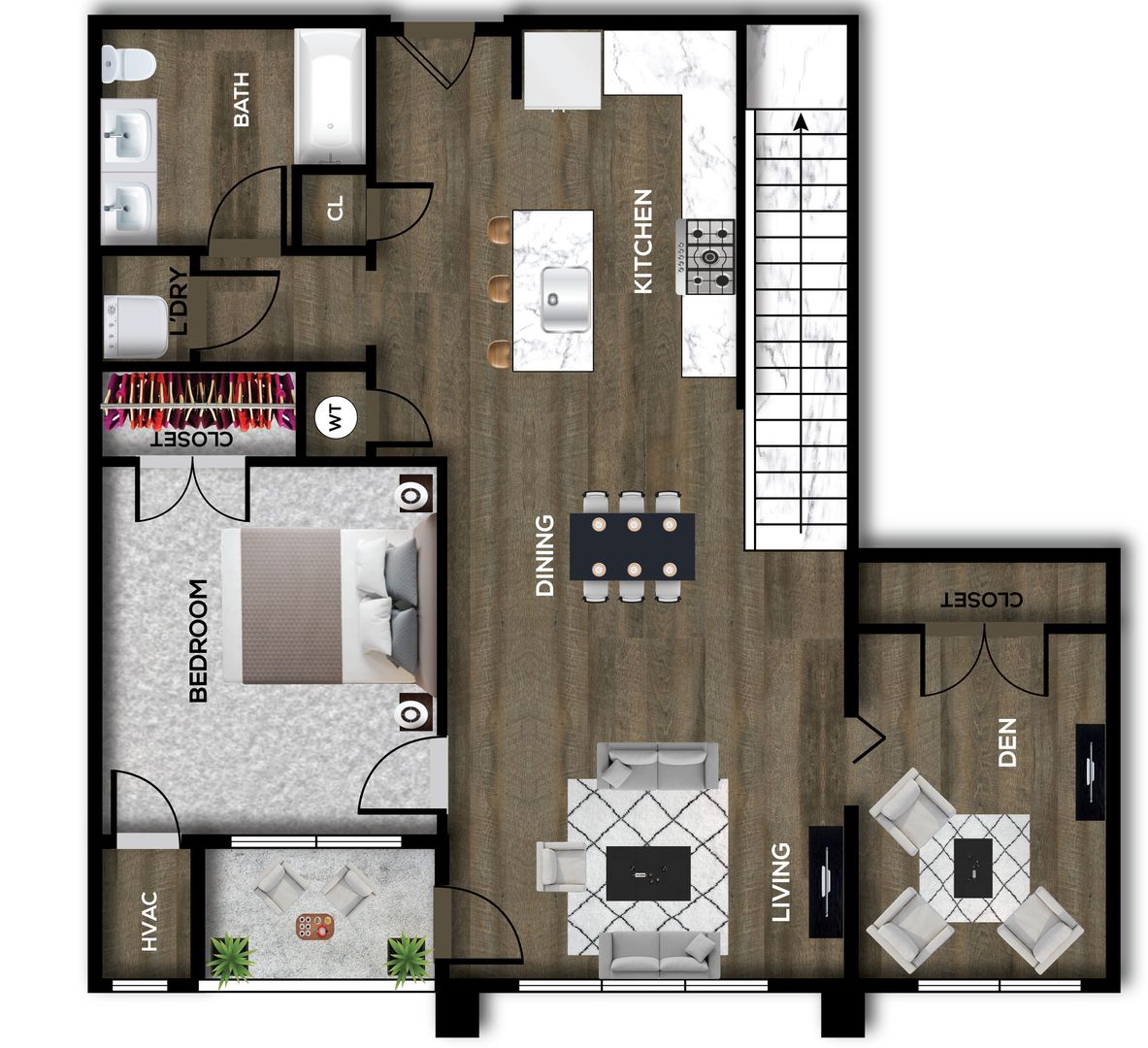 Introducing our luxurious "Pointe" layout, where modern design meets spacious comfort. This one-bedroom, one-bathroom apartment comes with a versatile den and a cozy loft, making it perfect for those seeking extra space for work or relaxation. With 1245 sq ft of meticulously designed living space, you'll enjoy stainless steel appliances, in-unit laundry, and a private balcony. The kitchen island, pantry, coat closet, and ample in-room closets ensure that you have all the storage you need. In addition, you'll find a dishwasher, garbage disposal, microwave, stove/oven, washer/dryer, and refrigerator at your disposal. Live in style and comfort at HH Bath View Apartments.