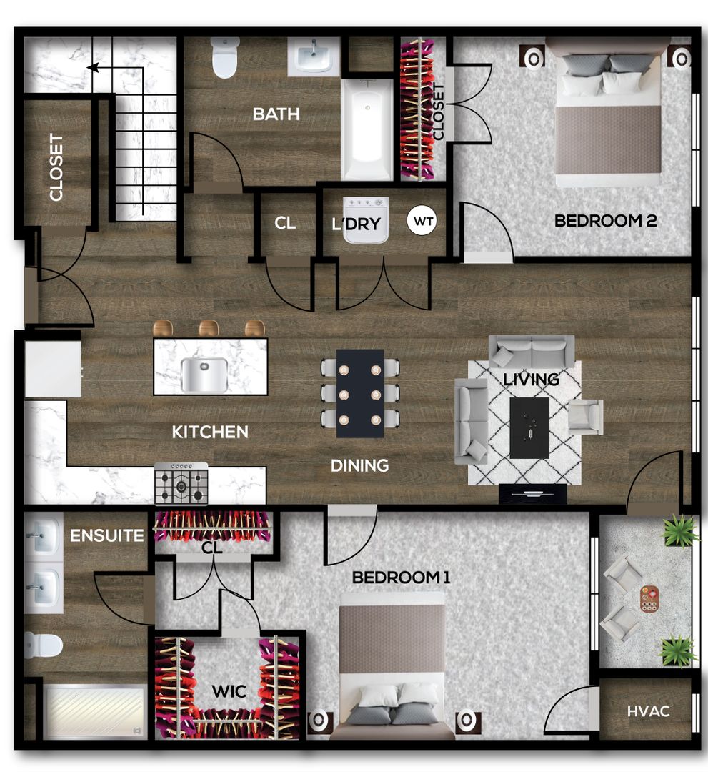 Indulge in the charm of our "Alpine" layout, a spacious 2-bedroom, 2-bathroom apartment with a loft, boasting 1400 sq ft of meticulously designed living space. This enchanting unit features stainless steel appliances, in-unit laundry, and a private balcony. The kitchen island, pantry, and numerous in-room closets offer convenient storage solutions. Discover the allure of Alpine living at HH Bath View Apartments, where every detail reflects sophistication and comfort.